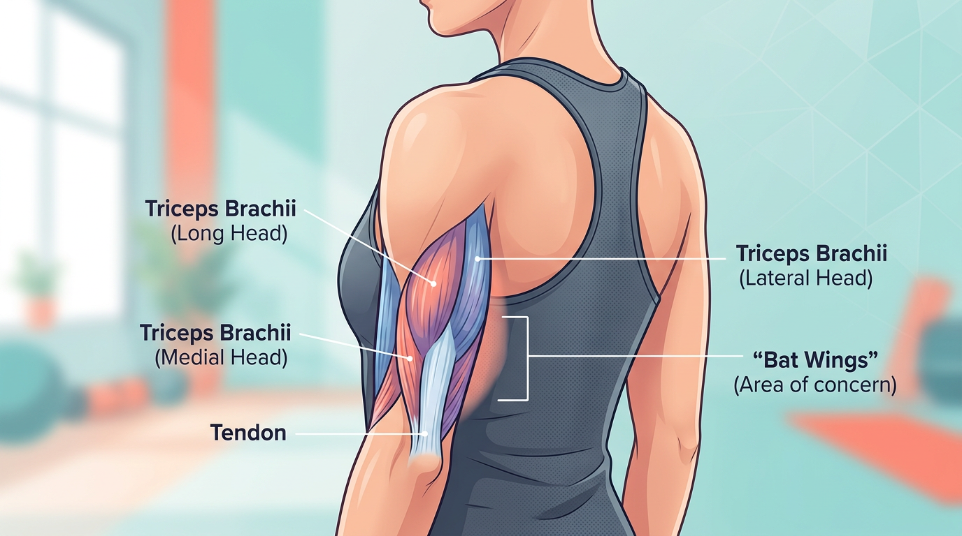 Bat wings is the slang term for loose, sagging skin under the upper arms, typically caused by age-related muscle loss, weight fluctuations, or lack of arm training. Targeted tricep exercises like overhead extensions, dips, and push-ups combined with overall strength training effectively tone and tighten this area without surgery.