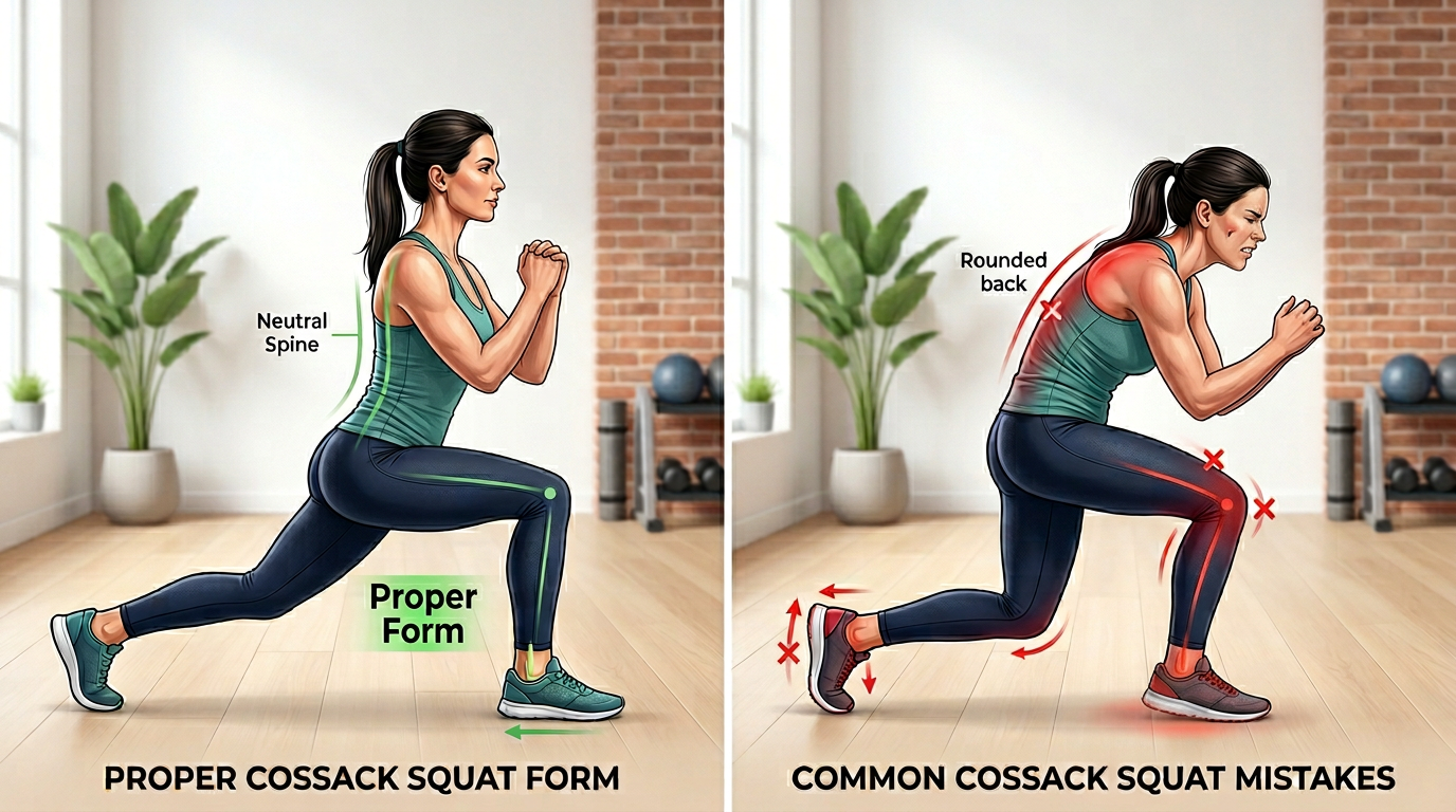 - Cossack Squats: 3 sets of 8-10 reps per side