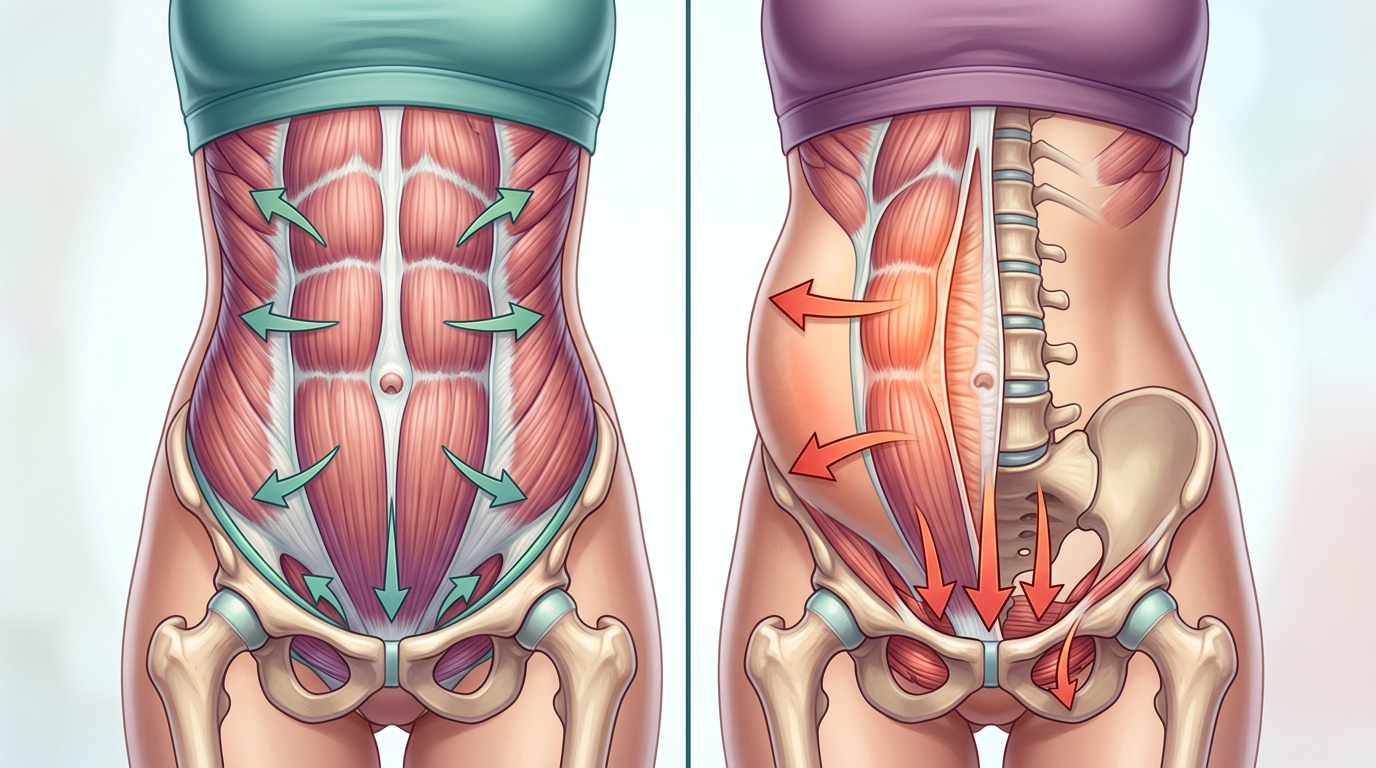 Diastasis recti—the separation of the abdominal muscles—often coexists with pelvic floor dysfunction. These two issues are interconnected because both are part of your core canister system.