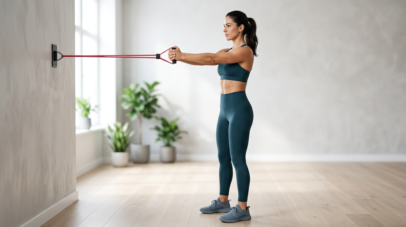 The Pallof press is an anti-rotation exercise that builds incredible core stability. Anchor a resistance band at chest height or hold a cable handle. Stand perpendicular to the anchor point with the band creating tension. Hold the handle at your chest with both hands, then press straight out in front of you, resisting the pull of the band trying to rotate you.