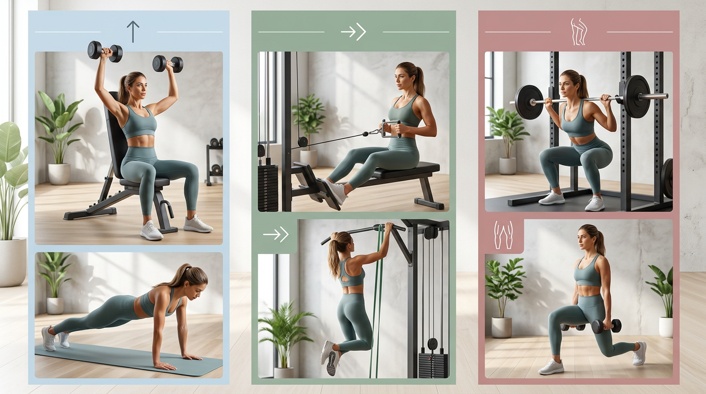 Full body workouts train all major muscle groups in each session. This approach works exceptionally well for beginners or women with limited training time.