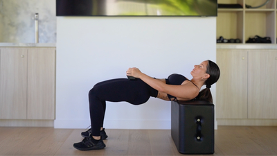 A compound lower body exercise that targets the glutes by driving the hips upward from a seated position with the upper back supported on a bench.
