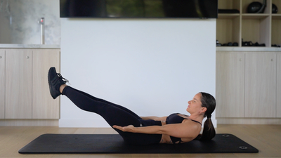 A core stability exercise that targets the deep abdominals and hip flexors by holding a curved, hollow body position on your back.