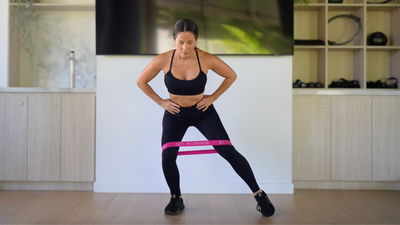 A glute activation exercise that uses a resistance band around the legs to strengthen the hip abductors and glutes by stepping sideways in a controlled manner.